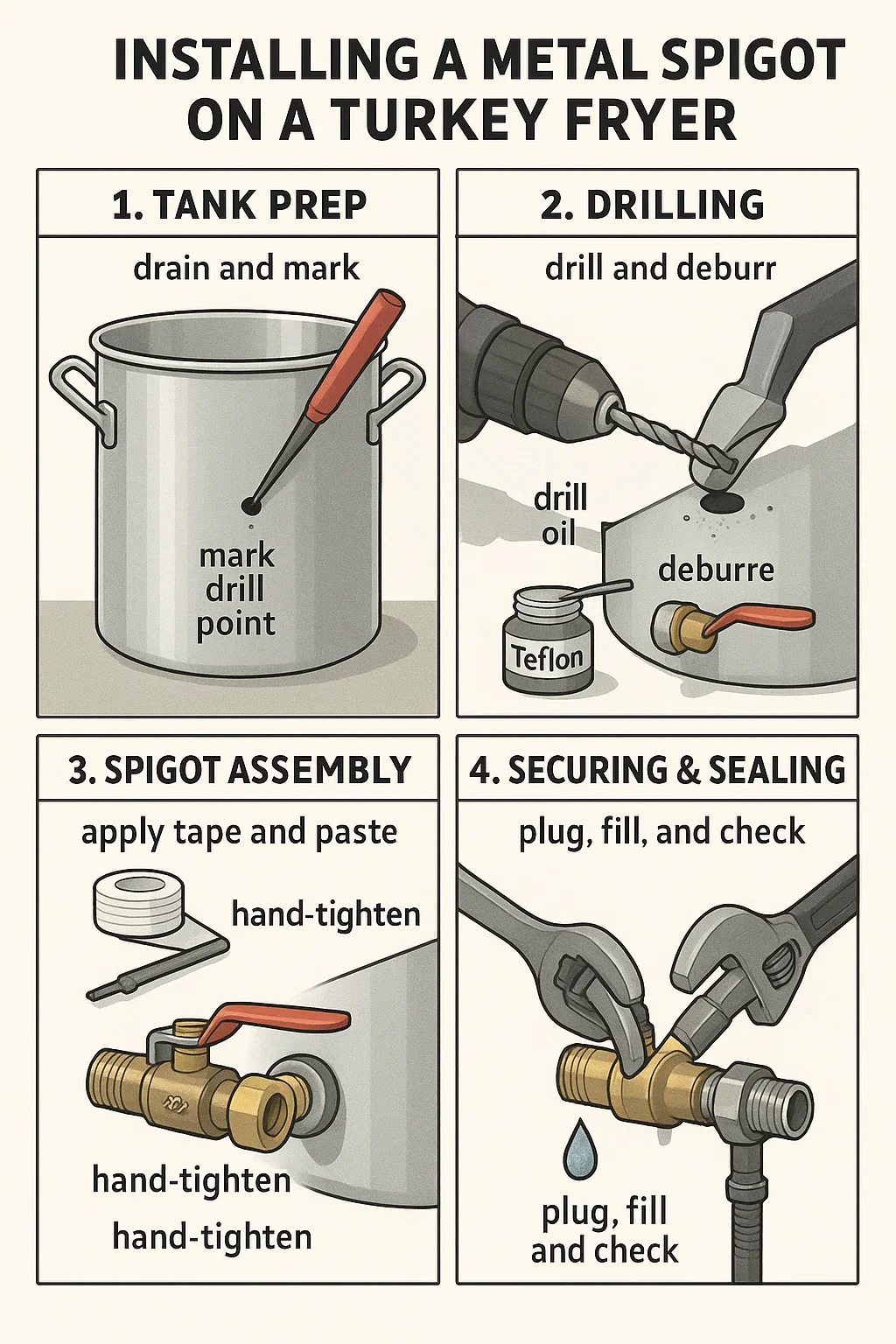 다음은 a를 설치하기위한 단계별 안내서입니다 금속 스피히 칠면조 프라이어 :