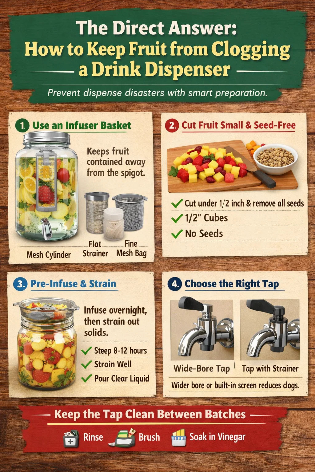 직접적인 대답: 과일이 음료수 디스펜서가 막히는 것을 방지하는 방법