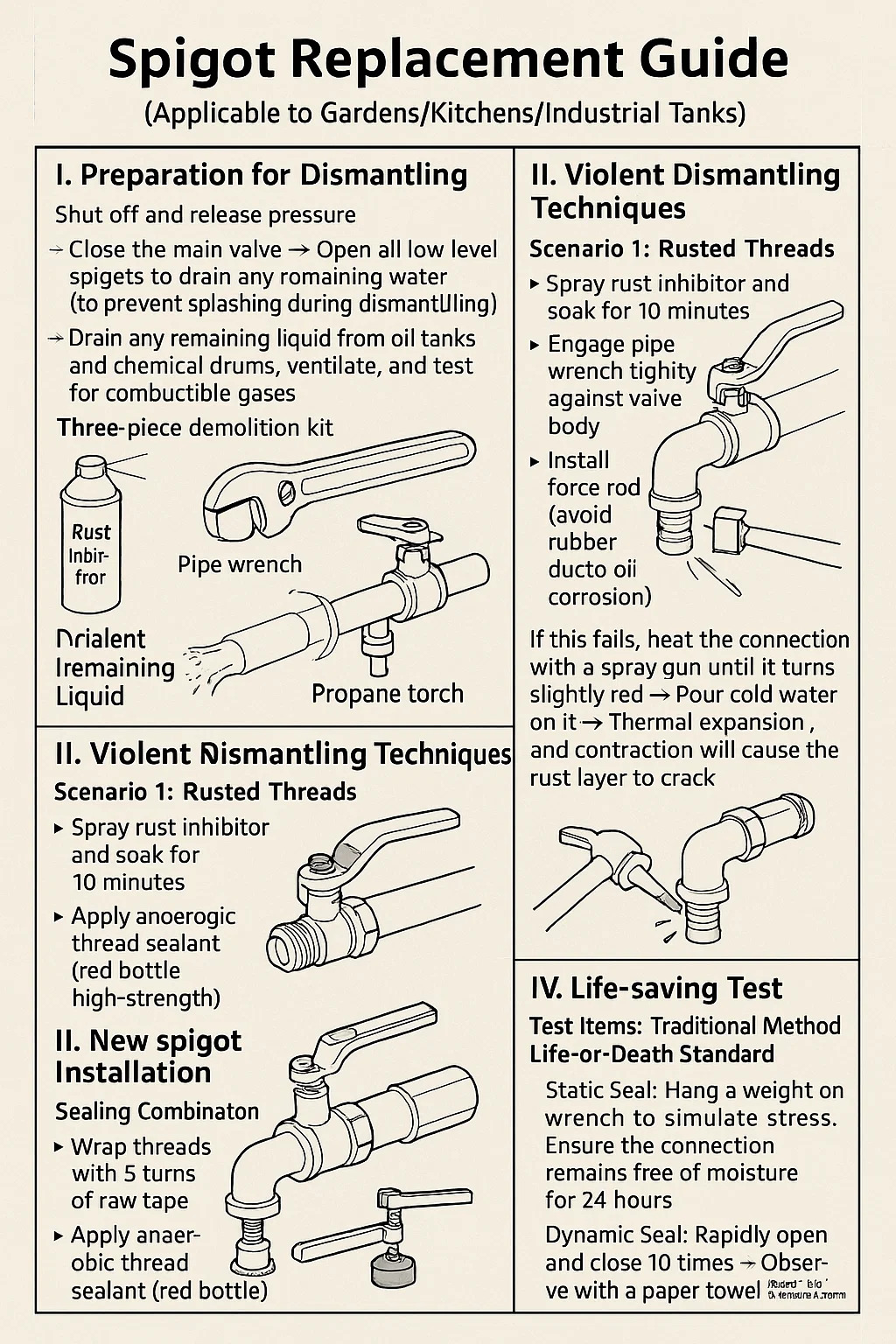 메인 밸브를 닫으 → 모든 저급 스키지를 열어 남은 물을 배수합니다 (해체 중 튀는 것을 방지하기 위해)