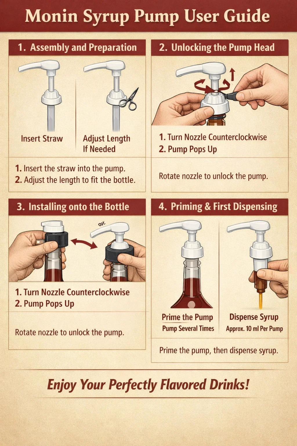 클래식 바 도구인 모닌 시럽 펌프의 경우 올바르게 사용하면 음료 준비가 더 원활해지고 시럽 품질이 더 잘 보존됩니다.