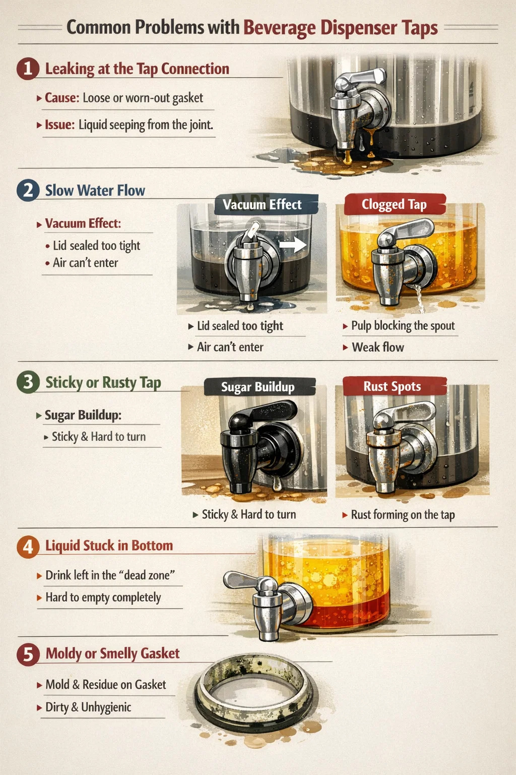음료 디스펜서를 사용하다 보면 디자인은 단순해 보이지만 몇 가지 실망스러운 사소한 문제에 직면할 수 있습니다. 이는 특히 핵심 구성요소인 금속 음료 디스펜서 탭 – 제대로 유지 관리되지 않으면 문제가 발생하기 가장 쉽습니다.