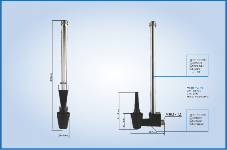 사이트 튜브, 마개, 와셔 및 너트는 모두 BPA 프리 소재로 제작되었습니다. 튜브의 외부 보호 장치는 경량 알루미늄으로 제작되었습니다. 그들은 전체 제품을 더 강하고 내구성 있는 구조로 만들어 마시기에 안전합니다.